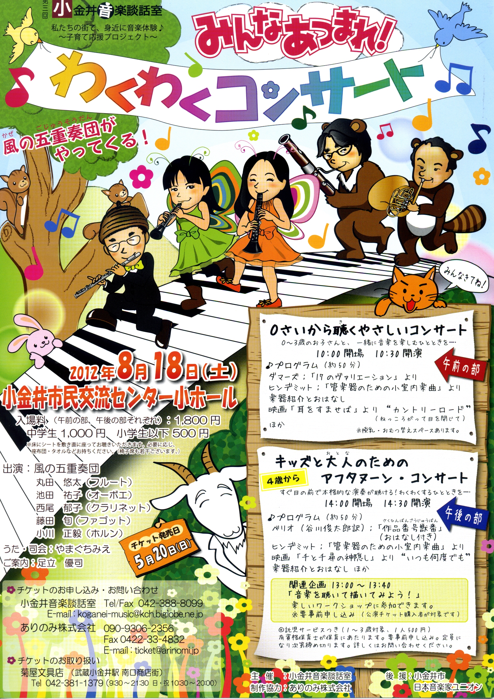 第3回小金井音楽談話室 みんなあつまれ!わくわくコンサート「風の五重奏団がやってくる!」2012年8月18日(土)のお知らせ