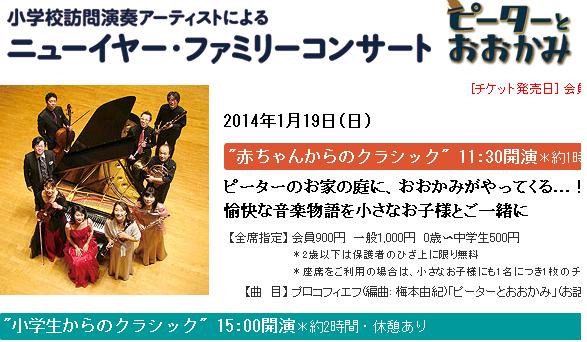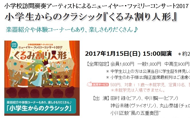 2011/01/05 小学校訪問演奏アーティストによる ニューイヤー・ファミリーコンサート(2010/1/16)の情報を更新しました