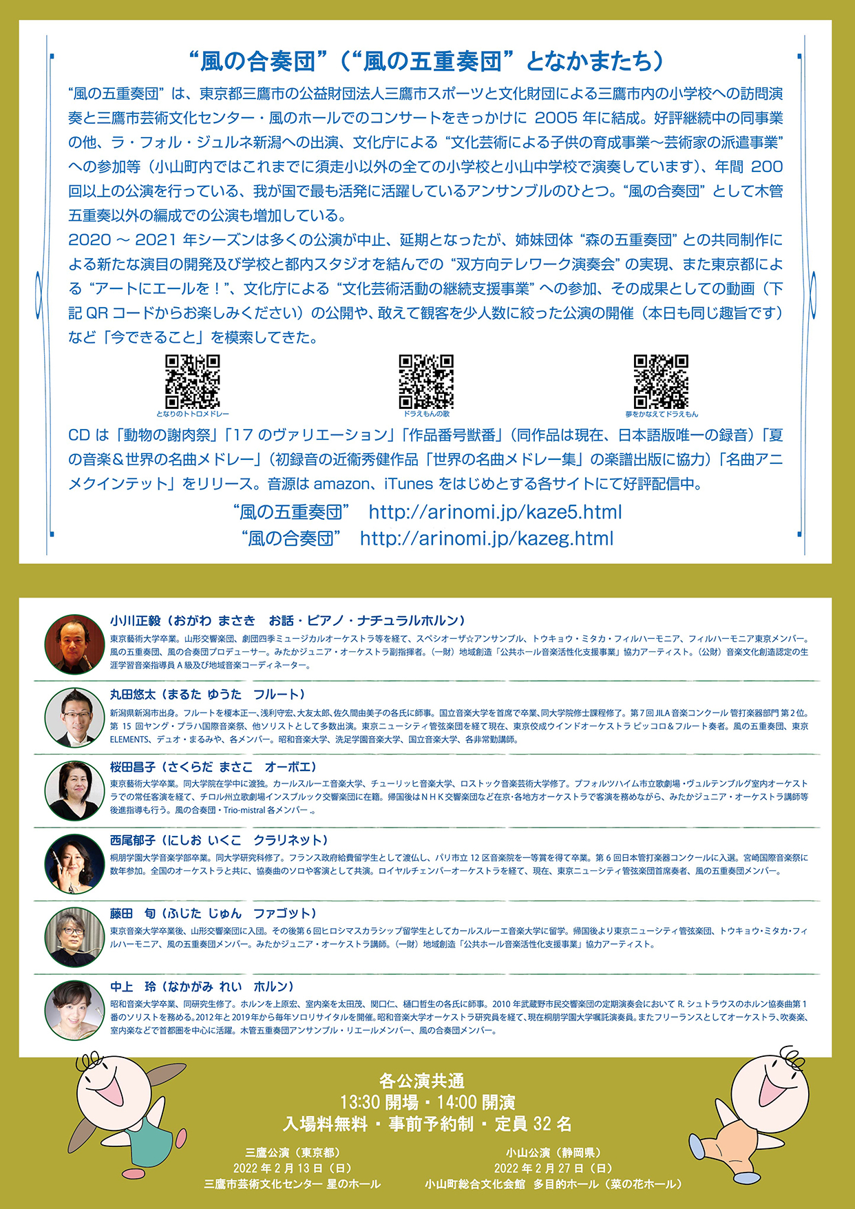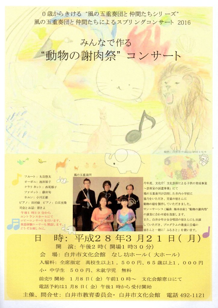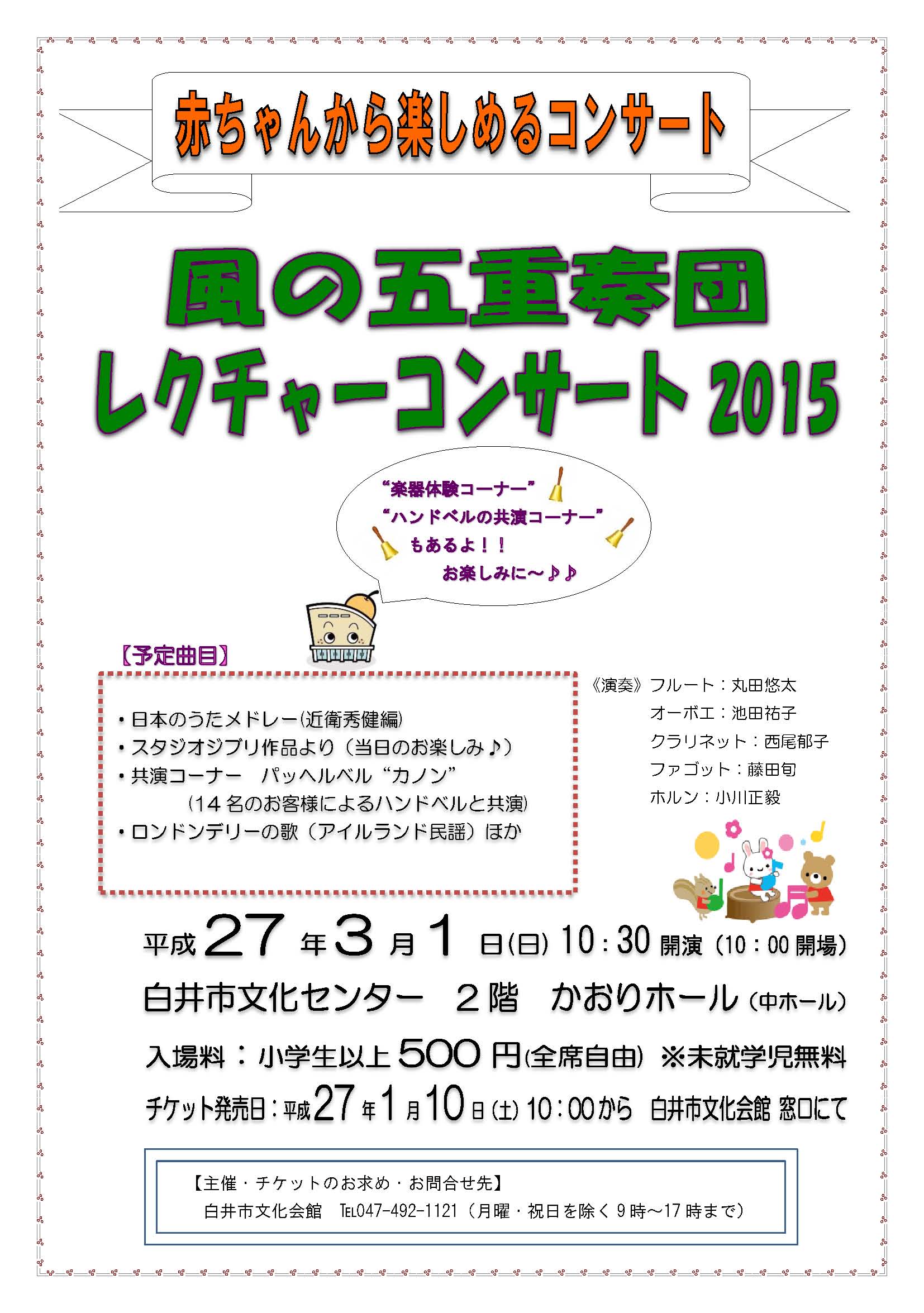 出演:風の五重奏団 うた・司会:やまぐちみえ ご案内:足立優司