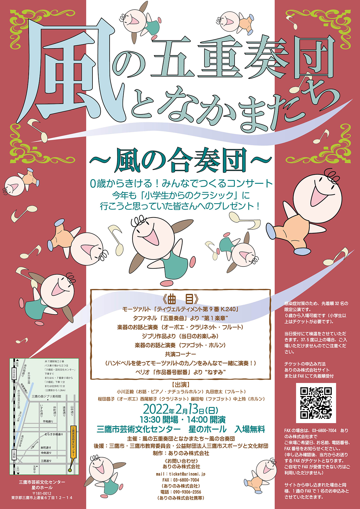 2021/1/11三鷹市芸術文化センター「星のホール」“風の合奏団”〜“風の五重奏団”となかまたち〜みんなでつくるコンサート(三鷹公演。入場無料。先着順32名)チケット