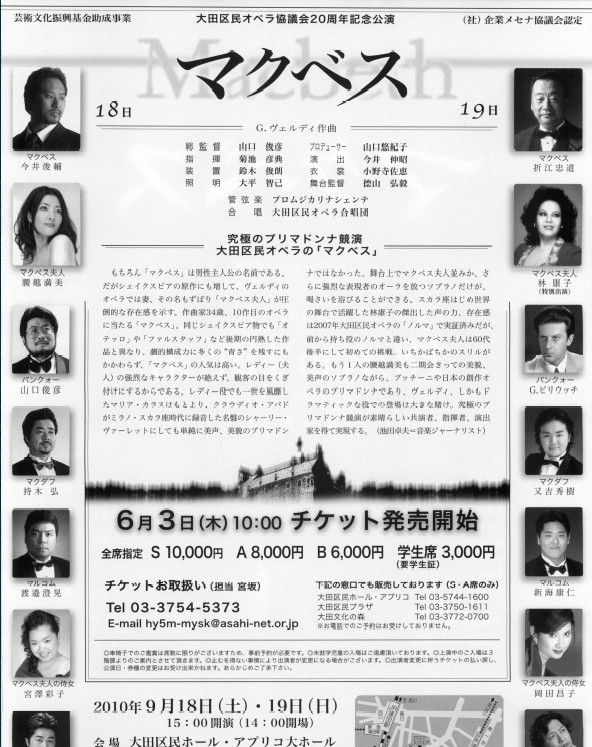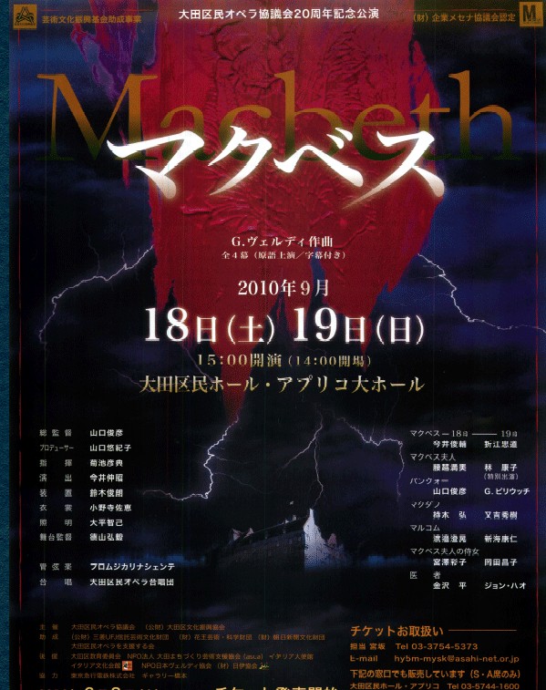大田区民オペラ協議会公演“マクベス” 大田区民ホール・アプリコ蒲田駅(東急・JR) 大田区民オペラ協議会 オーケストラ制作